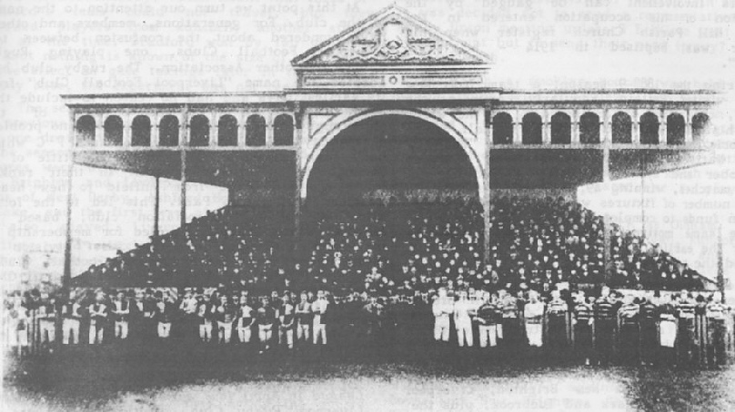 Archive ARCHIVE Cardiff  versus Liverpool, Boxing Day,  1885 The earliest known photograph of  a Liverpool Team. Cardiff (left), Liverpool (right),  Boxing Day 1885 in front of the new stand at the Arms Park.* * The photograph is copied from the History of Liverpool Football Club 1857-1982, where it was reproduced by the kind permission of Mr J B G Thomas